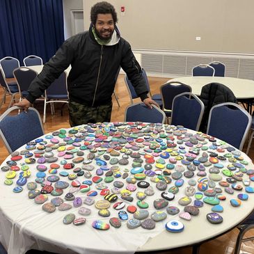 painted 400 Love Rocks as part of a Martin Luther King Day of Service on January 18. Project Manager White Dawes spoke to participants about the vital work of Sasha Bruce Youthwork to end youth homelessness.
