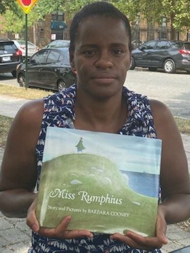 Courtney won the "Miss Rumphius" hardcover book donated by the Rumphius Foundation for the raffle.